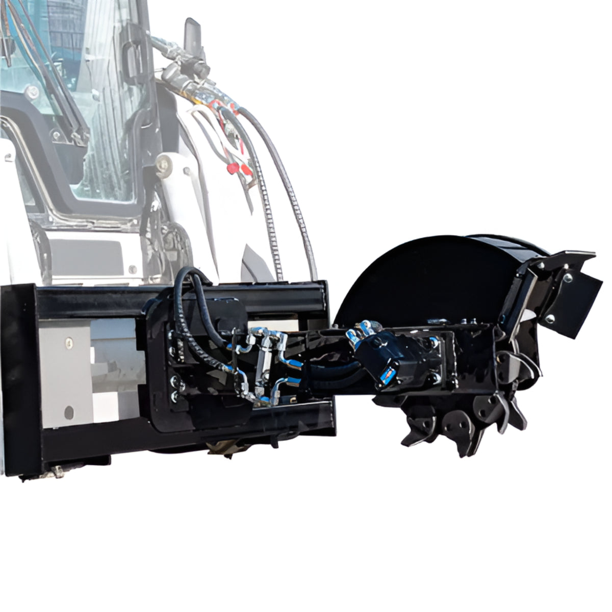 The BlackRidge HydraSwing 72 Skid Steer Stump Grinder is a professional hydraulic attachment engineered for high-output land clearing and precision stump removal. Designed to mount to a skid steer and operate from the cab, it pairs a heavy-guarded cutting wheel with a wide swing arc to erase stumps quickly while keeping chips directed and contained. With rugged steel construction, reinforced pivot points, and a purpose-built deflector, itβs the premium choice for contractors who want speed, control, and clean results in the field.