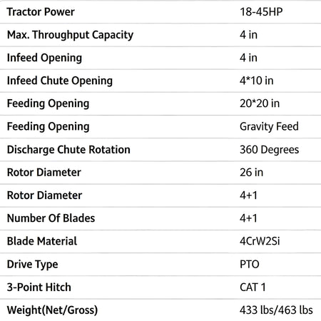 Engineered for durability and ease of use, the 4-Inch Wood Chipper Shredder Attachment features a rugged steel construction built to withstand years of heavy outdoor projects. The compatible 3-point hitch design makes mounting quick and simple for a wide variety of Category 1 tractors. From the oversized safety hopper to the precision-hardened blades, this attachment provides the professional-grade performance you need to keep your property looking pristine year-round.